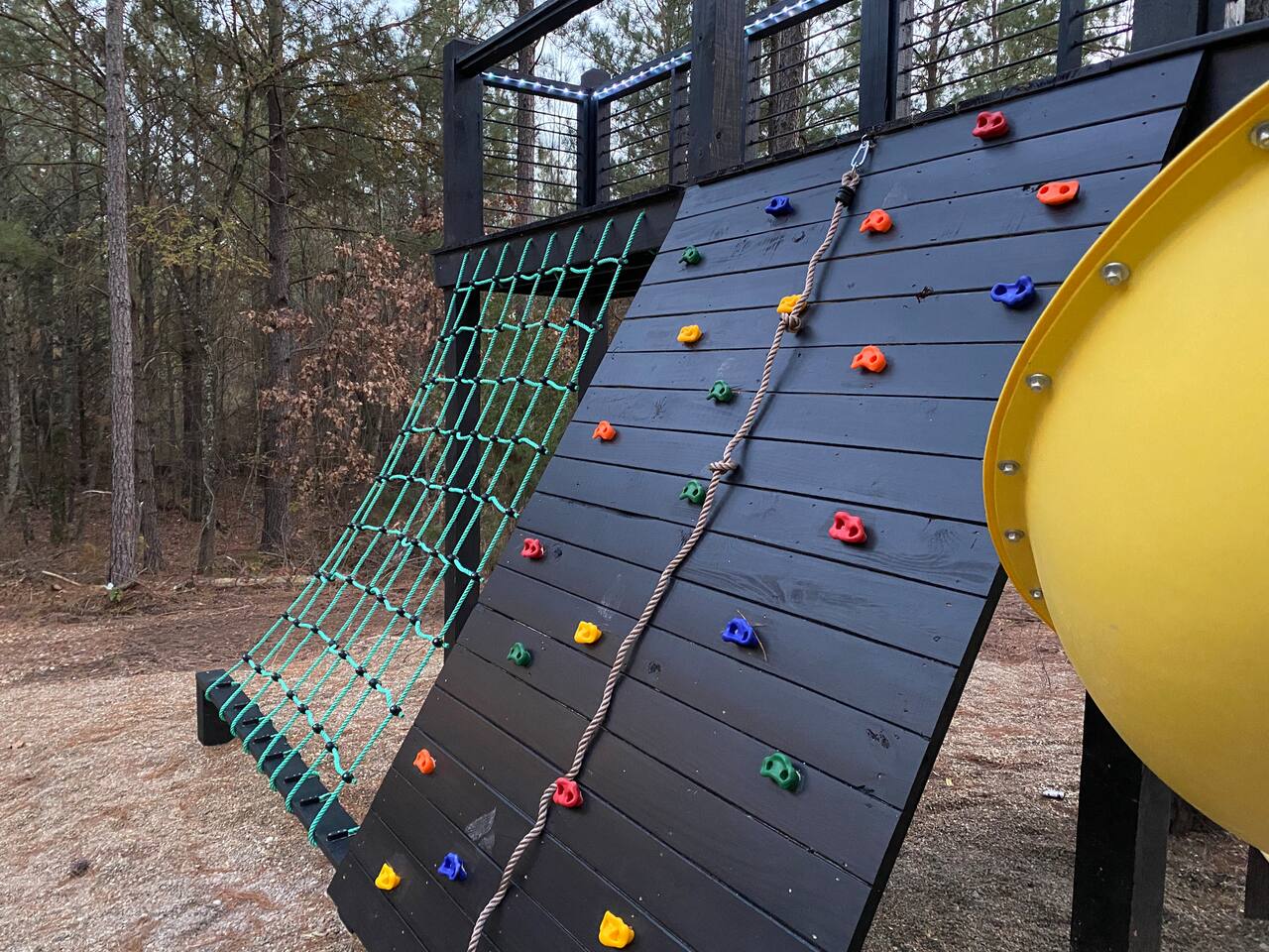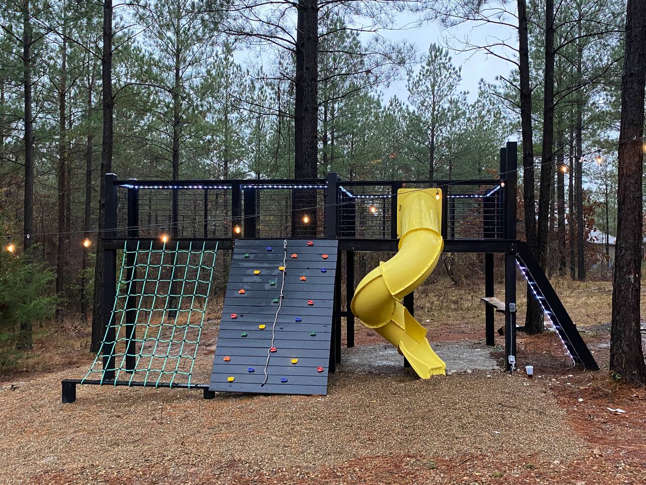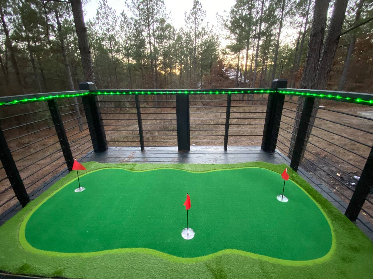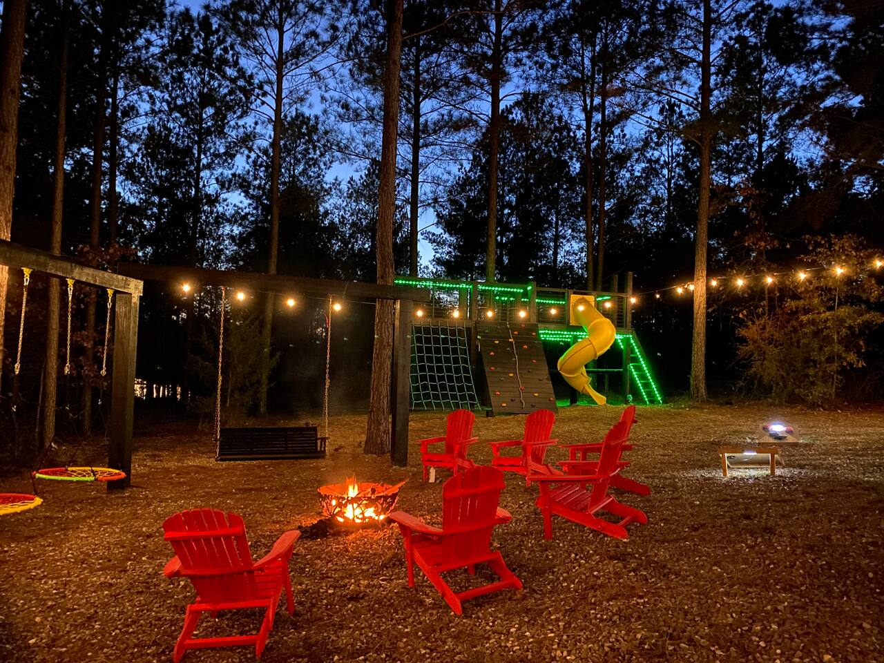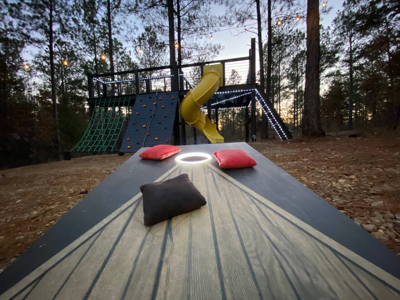 Fun Getaway for the whole family in Hochatown, OK! Short Drive to Beavers Bend State Park and Lake; ✔ Large hot tub under Pine Trees ✔ Arcade ✔ Golf putting green ✔ Wood burning Firepit ✔ Climbing wall ✔ Slide for kids but big enough for dad to use it too ✔ Multiple Hammocks & swings ✔ 2 hanging egg swings in entryway ✔ Duo Keurig coffee maker (carafe and single pod) ✔ Smart TVs in every bedroom, living room, each kids bunks and one outdoor TV by the hot tub. ✔ Shuffleboard