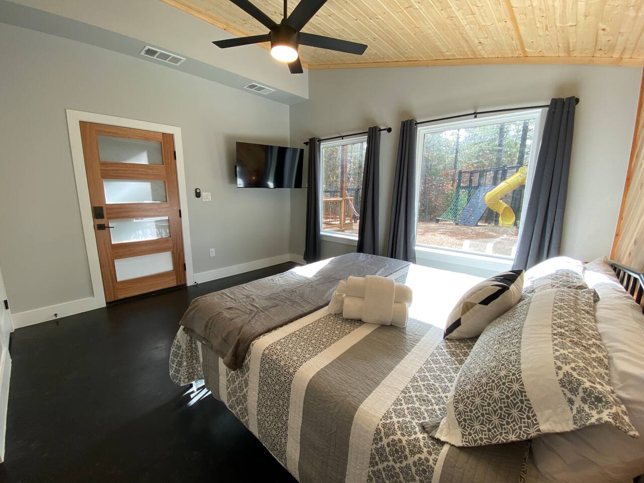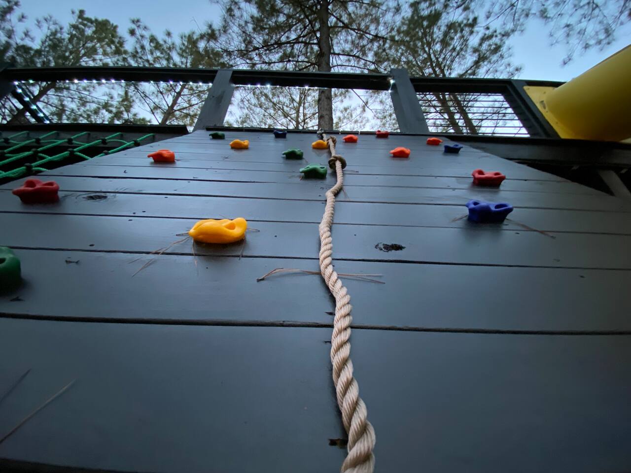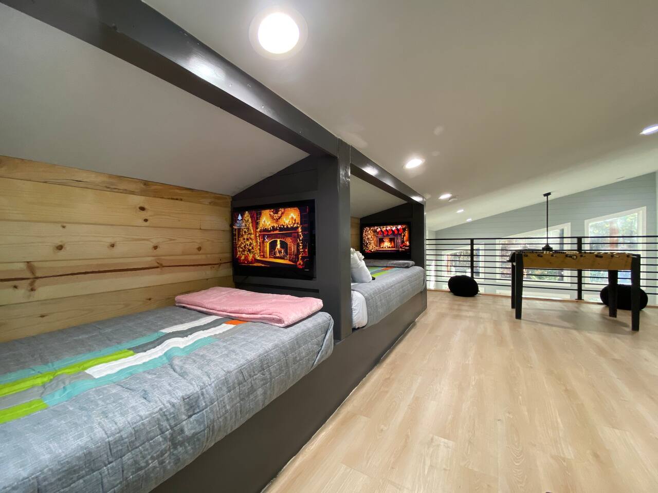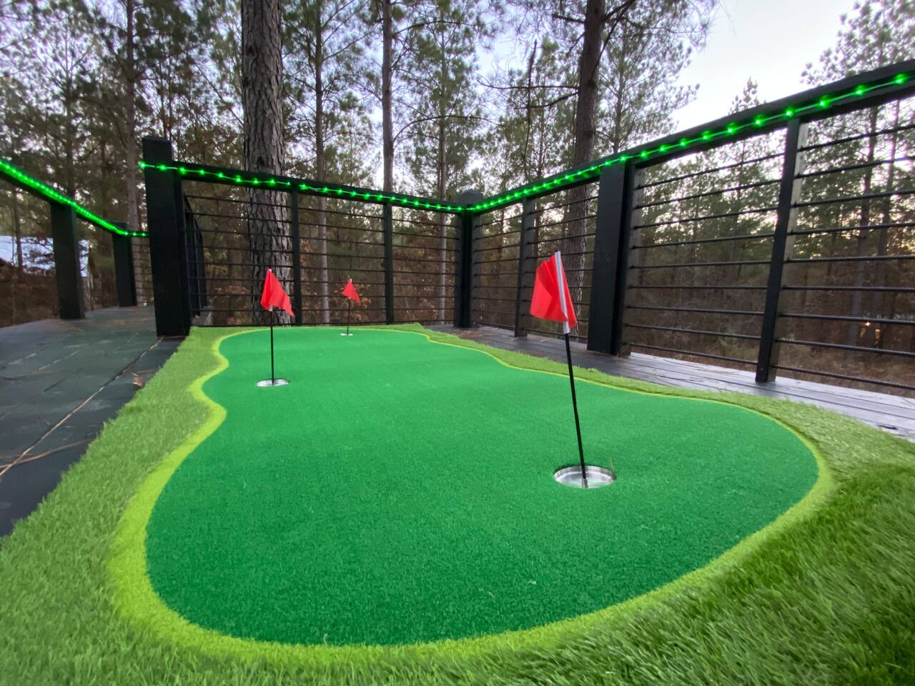 Fun Getaway for the whole family in Hochatown, OK! Short Drive to Beavers Bend State Park and Lake; ✔ Large hot tub under Pine Trees ✔ Arcade ✔ Golf putting green ✔ Wood burning Firepit ✔ Climbing wall ✔ Slide for kids but big enough for dad to use it too ✔ Multiple Hammocks & swings ✔ 2 hanging egg swings in entryway ✔ Duo Keurig coffee maker (carafe and single pod) ✔ Smart TVs in every bedroom, living room, each kids bunks and one outdoor TV by the hot tub. ✔ Shuffleboard