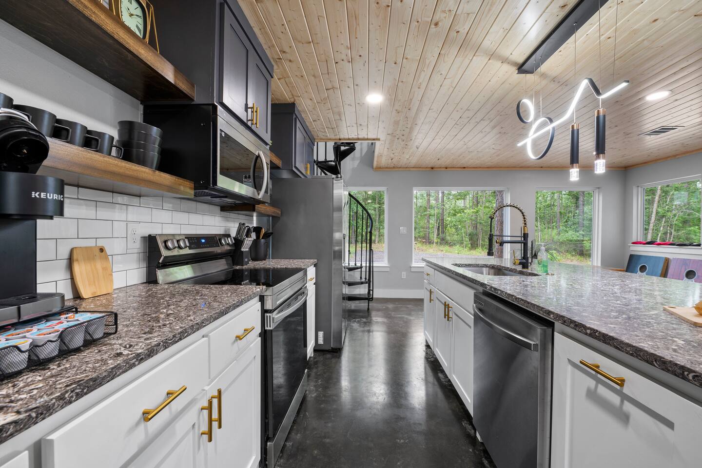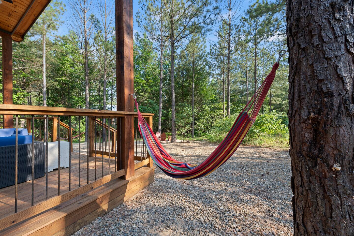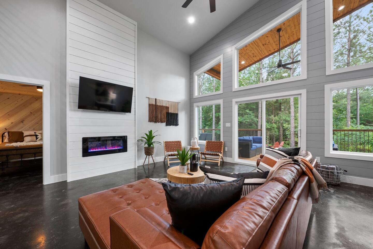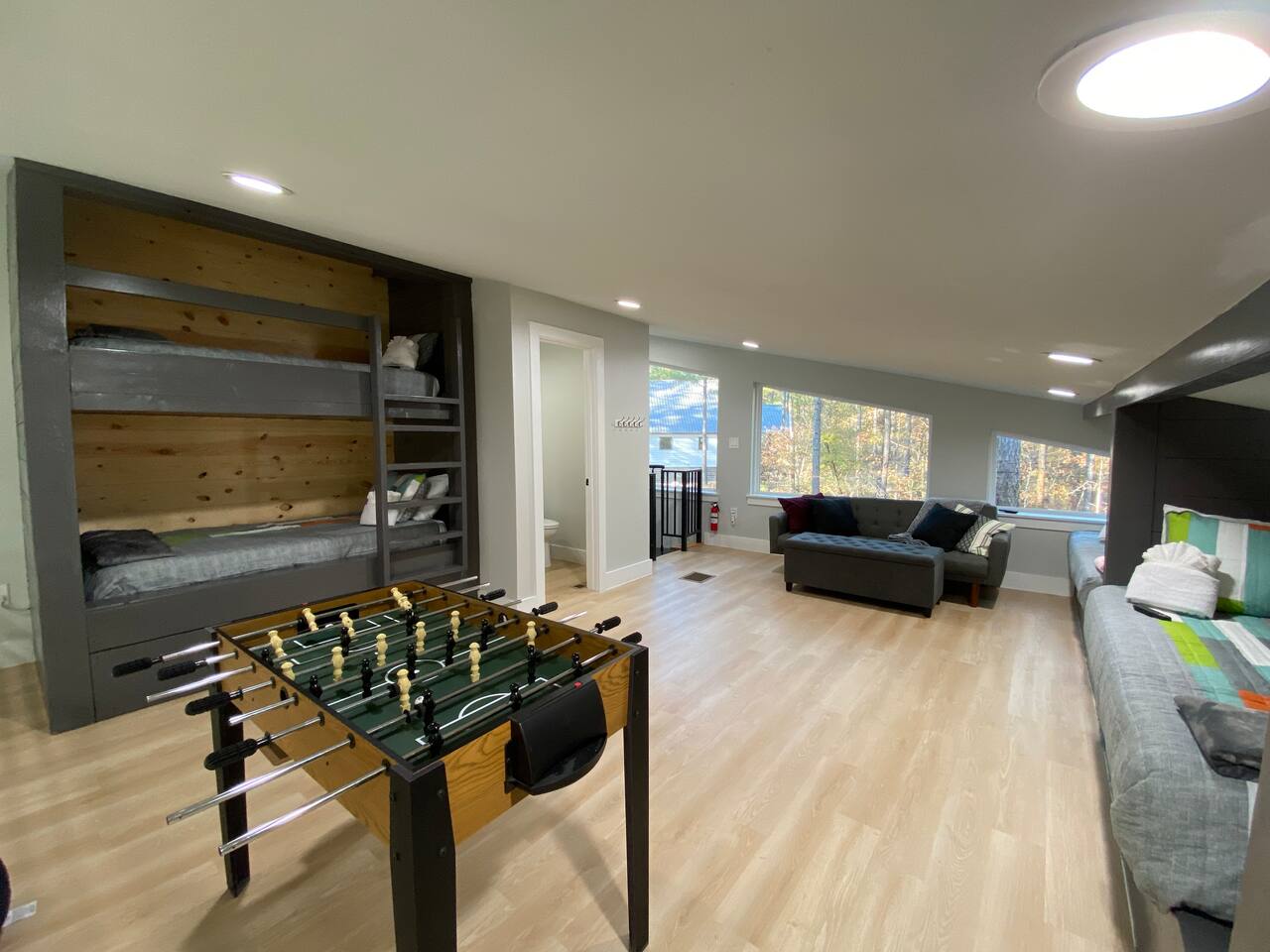 Fun Getaway for the whole family in Hochatown, OK! Short Drive to Beavers Bend State Park and Lake; ✔ Large hot tub under Pine Trees ✔ Arcade ✔ Golf putting green ✔ Wood burning Firepit ✔ Climbing wall ✔ Slide for kids but big enough for dad to use it too ✔ Multiple Hammocks & swings ✔ 2 hanging egg swings in entryway ✔ Duo Keurig coffee maker (carafe and single pod) ✔ Smart TVs in every bedroom, living room, each kids bunks and one outdoor TV by the hot tub. ✔ Shuffleboard