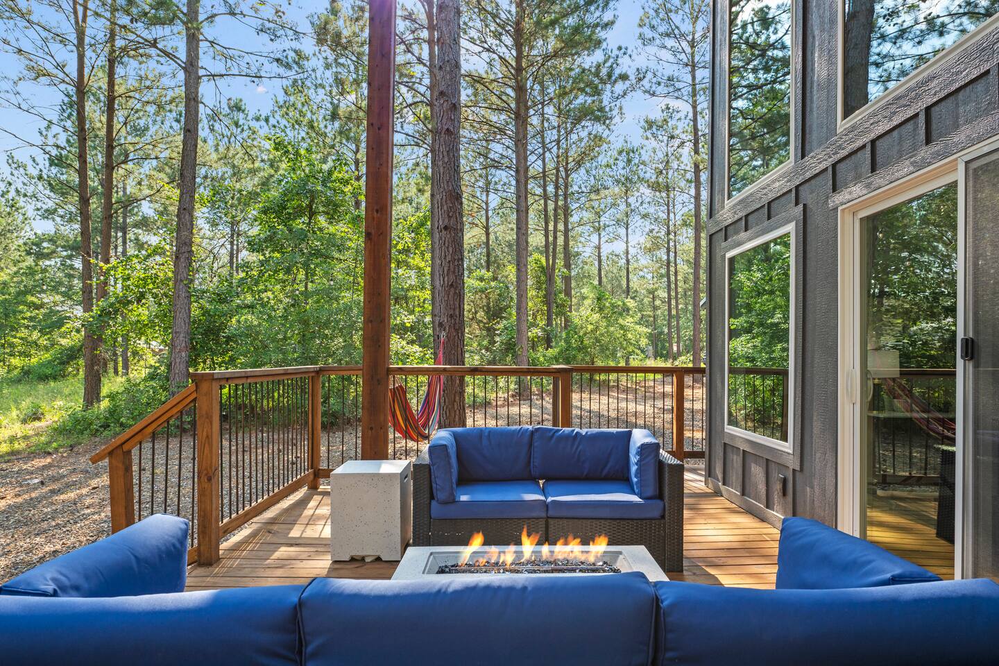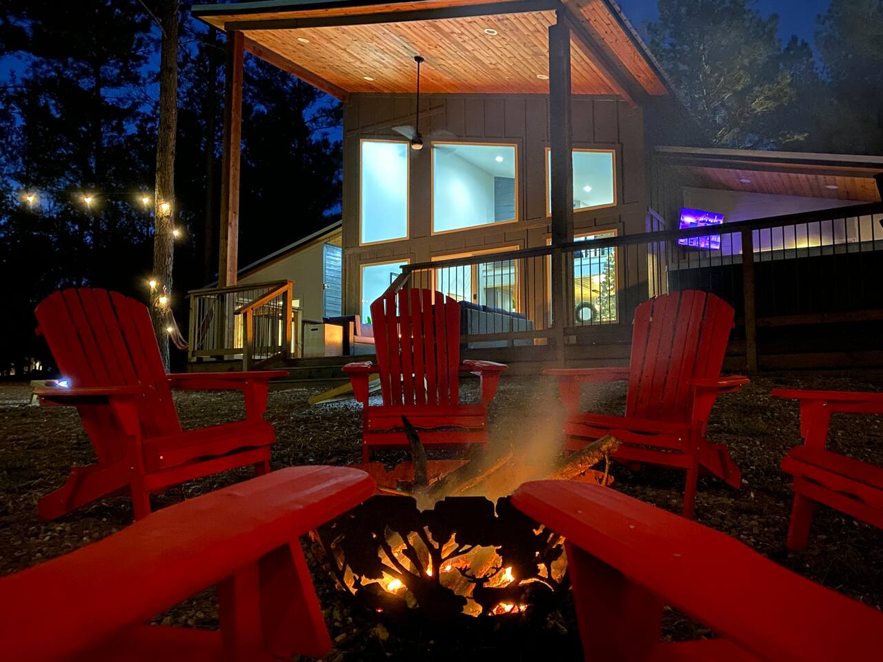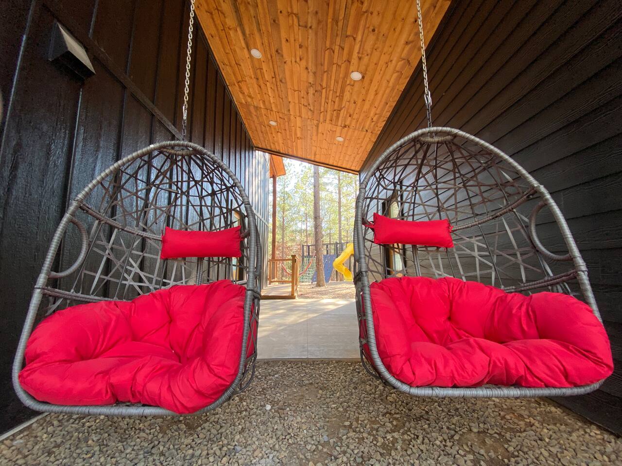 ✔ Foosball ✔ Each of the four bunk beds has their own built-in TV ✔ EV Charger ✔ Outdoor dining ✔ 1 Gbps wifi ✔ Pets welcome for an additional amount ✔ Life size connect four ✔ Game loft with foosball ✔ Gas Grill - hard lined ✔ Gas Fire Pit on the deck ✔ Self-Check in (Smart locks) ✔ Full size washer & dryer in cabin Starry Woods is a uniquely designed cabin with a main house and separate private king room across the breezeway accommodating two couples with a lot of privacy as well as 4 Twin bunk beds in the loft. With 2 king suites and a loft that sleeps up to 8 guests, this cabin provides ample room and privacy for all guests! The beautiful outdoor living area will be the main attraction during your stay with a hot tub, outdoor games, slide, swings, fire pit, hammocks and much more! For optimal accommodations & comfort, it sleeps 4 adults and 4 kids but can support up to 6 adults & 2 kids if needed. Surrounded by woods, we are Family and pet-friendly Broken Bow Cabin Rental ☆☆ BEDROOMS ☆☆ Surrounded by nature, the cabin accommodates eight guests comfortably, offering two master bedrooms with a king-sized bed on the first floor. Enjoy TV shows on the smart TV while taking in the scenic views of nature through the large glass sliding door. Upstairs, in the loft area you will find 4 bunk beds all with their own built-in TV. No more fighting over which show to watch… ☆☆ BATHROOMS ☆☆ Two stylish bathrooms provide modern fixtures and ample space. One master bathroom on the first floor boasts a double sink vanity, a large free-standing bathtub, and a spacious shower with dual shower heads. A second full bathroom for the 2nd master bedroom also sports dual shower heads and dual vanity. The upstairs loft area has a half bathroom. ☆☆ KITCHEN & LOUNGE ☆☆ The open-concept kitchen features stainless-steel appliances, very large island, electric stove and all the accessories you need to cook a meal for your hungry family members. Personal touches include, a spice rack, wine glasses and everything needed for s'mores. The granite kitchen island is perfect for family gatherings. The living room offers a cozy space with a leather sofa, chairs, an indoor fireplace, a smart TV, and shuffleboard. ☆☆ PET FRIENDLY & & PET POLICY ☆☆ Starry Woods is pet friendly and we allow upto 2 pets for an additional fee. Kindly fill the details in the details of guest and pets in the reservation section. ☆☆ OUTSIDE SPACE ☆☆ The cabin's highlight is the outdoor space, featuring a wooden deck with a hot tub, dining table, lots of seating, swings and Adirondack chairs around the firepit. Enjoy BBQ on the grill, play cornhole, and indulge in some other outdoor fun games and amenities all for your family to connect and have fun. The fire pit area is perfect for moonlit conversations and s'mores, while the hanging swings provide a unique relaxation spot. Kids will love the outdoor climbing wall and slide (even for dad), and string lights keep the fun going well after dark. Conveniently located near Dallas, Fort Worth, Oklahoma City, Tulsa, Little Rock, and Shreveport, "Starry Woods" in Broken Bow, Oklahoma, offers a fantastic cabin experience. Whether it's a quick trip or a relaxing vacation, this chalet promises a wonderful time amid nature activities, hiking trails, and great restaurants. ☆☆ AREA ATTRACTIONS ☆☆ ✔ Beavers Bend State Park with Local Hiking Trails- only minutes from the cabin ✔ Broken Bow Lake ( around 6 miles from the cabin) ✔ Rugaru Adventures (Zip-Lining) around 10 mins away ✔ Hochatown Petting Zoo for Family Friendly Fun ✔ Fish Tales Winery & Bistro & Local Wineries/Breweries ✔ Lower Mountain Fork River for Trout Fishing ✔ Hochatown State Park (around 5 mins away) ✔ Restaurants & shopping in Hochatown area (minutes away) ✔ 7 miles to Choctaw Landing Casino Broken Bow ✔ ATV Trails and more! ☆☆ 🍽️ RESTAURANTS and GROCERY☆☆ ✔ Grateful Head Pizza Oven & Tap Room ✔ Abendigo’s Grill & Patio ✔ Papa Poblano’s ✔ Pruett’s Food ✔ Mountain Man Meat Market ✔ Walmart Supercenter – Broken Bow Remember, we love dogs and are happy for 1 dog under 50 pounds to join you on your vacation. The small fee is applied during the booking confirmation. ★☆ Book Today & Let Us Take Care of You in Broken Bow! ☆★