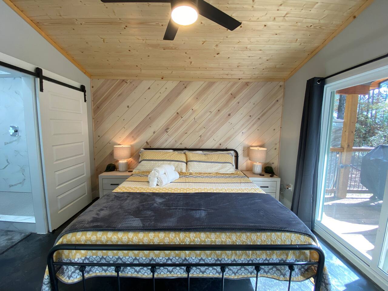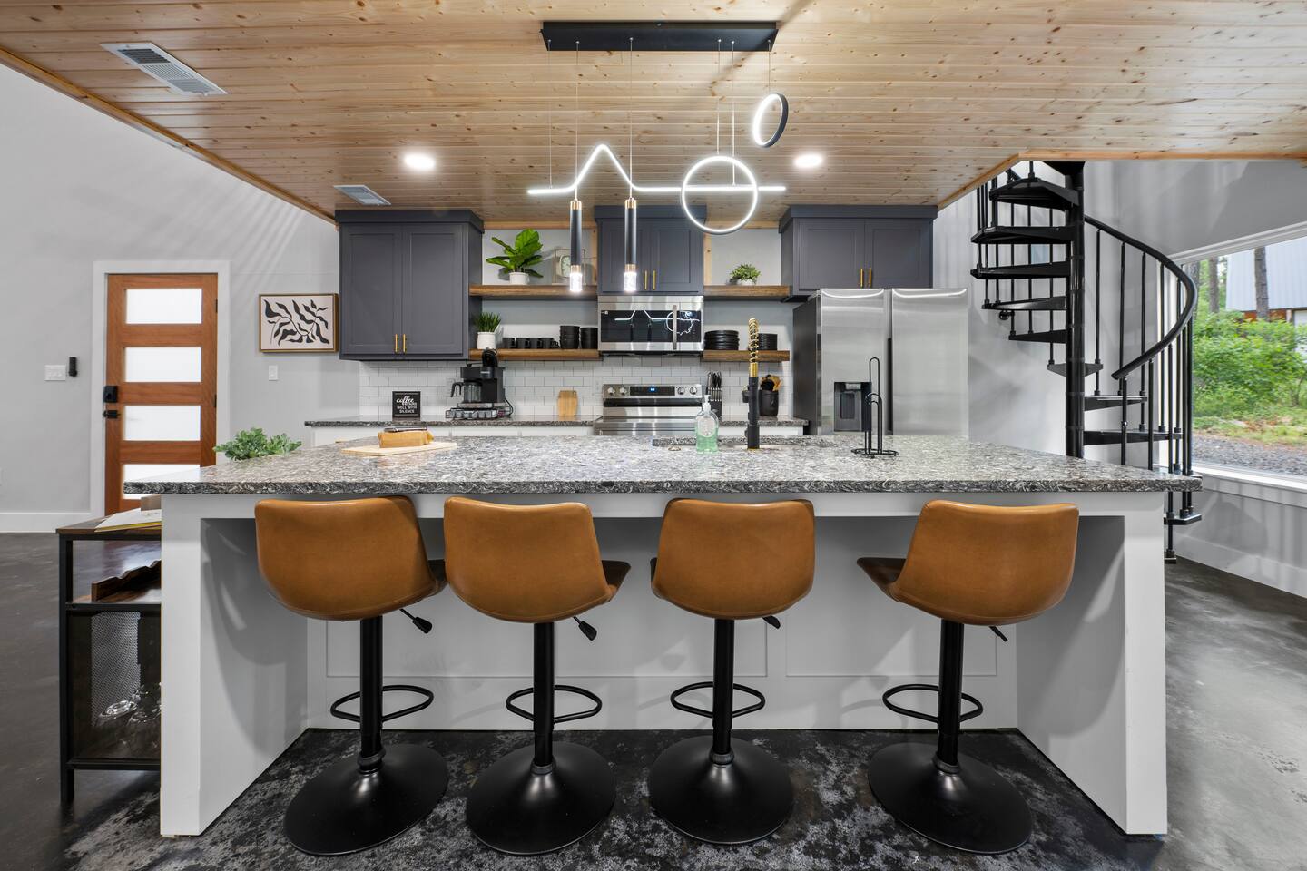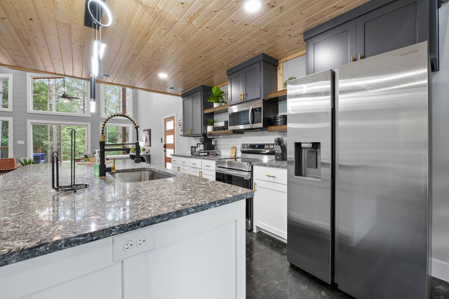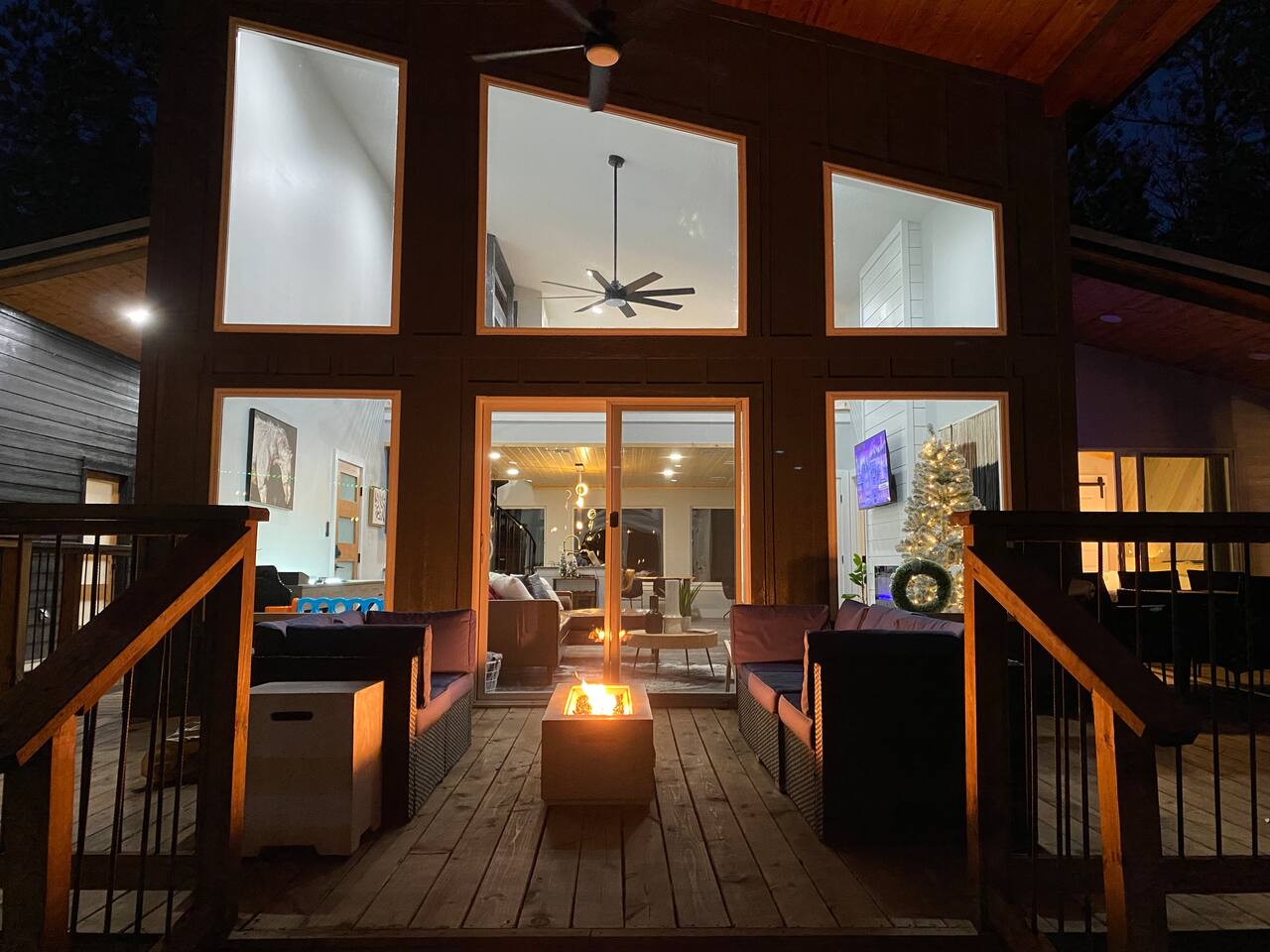 ✔ Foosball ✔ Each of the four bunk beds has their own built-in TV ✔ EV Charger ✔ Outdoor dining ✔ 1 Gbps wifi ✔ Pets welcome for an additional amount ✔ Life size connect four ✔ Game loft with foosball ✔ Gas Grill - hard lined ✔ Gas Fire Pit on the deck ✔ Self-Check in (Smart locks) ✔ Full size washer & dryer in cabin Starry Woods is a uniquely designed cabin with a main house and separate private king room across the breezeway accommodating two couples with a lot of privacy as well as 4 Twin bunk beds in the loft. With 2 king suites and a loft that sleeps up to 8 guests, this cabin provides ample room and privacy for all guests! The beautiful outdoor living area will be the main attraction during your stay with a hot tub, outdoor games, slide, swings, fire pit, hammocks and much more! For optimal accommodations & comfort, it sleeps 4 adults and 4 kids but can support up to 6 adults & 2 kids if needed. Surrounded by woods, we are Family and pet-friendly Broken Bow Cabin Rental ☆☆ BEDROOMS ☆☆ Surrounded by nature, the cabin accommodates eight guests comfortably, offering two master bedrooms with a king-sized bed on the first floor. Enjoy TV shows on the smart TV while taking in the scenic views of nature through the large glass sliding door. Upstairs, in the loft area you will find 4 bunk beds all with their own built-in TV. No more fighting over which show to watch… ☆☆ BATHROOMS ☆☆ Two stylish bathrooms provide modern fixtures and ample space. One master bathroom on the first floor boasts a double sink vanity, a large free-standing bathtub, and a spacious shower with dual shower heads. A second full bathroom for the 2nd master bedroom also sports dual shower heads and dual vanity. The upstairs loft area has a half bathroom. ☆☆ KITCHEN & LOUNGE ☆☆ The open-concept kitchen features stainless-steel appliances, very large island, electric stove and all the accessories you need to cook a meal for your hungry family members. Personal touches include, a spice rack, wine glasses and everything needed for s'mores. The granite kitchen island is perfect for family gatherings. The living room offers a cozy space with a leather sofa, chairs, an indoor fireplace, a smart TV, and shuffleboard. ☆☆ PET FRIENDLY & & PET POLICY ☆☆ Starry Woods is pet friendly and we allow upto 2 pets for an additional fee. Kindly fill the details in the details of guest and pets in the reservation section. ☆☆ OUTSIDE SPACE ☆☆ The cabin's highlight is the outdoor space, featuring a wooden deck with a hot tub, dining table, lots of seating, swings and Adirondack chairs around the firepit. Enjoy BBQ on the grill, play cornhole, and indulge in some other outdoor fun games and amenities all for your family to connect and have fun. The fire pit area is perfect for moonlit conversations and s'mores, while the hanging swings provide a unique relaxation spot. Kids will love the outdoor climbing wall and slide (even for dad), and string lights keep the fun going well after dark. Conveniently located near Dallas, Fort Worth, Oklahoma City, Tulsa, Little Rock, and Shreveport, "Starry Woods" in Broken Bow, Oklahoma, offers a fantastic cabin experience. Whether it's a quick trip or a relaxing vacation, this chalet promises a wonderful time amid nature activities, hiking trails, and great restaurants. ☆☆ AREA ATTRACTIONS ☆☆ ✔ Beavers Bend State Park with Local Hiking Trails- only minutes from the cabin ✔ Broken Bow Lake ( around 6 miles from the cabin) ✔ Rugaru Adventures (Zip-Lining) around 10 mins away ✔ Hochatown Petting Zoo for Family Friendly Fun ✔ Fish Tales Winery & Bistro & Local Wineries/Breweries ✔ Lower Mountain Fork River for Trout Fishing ✔ Hochatown State Park (around 5 mins away) ✔ Restaurants & shopping in Hochatown area (minutes away) ✔ 7 miles to Choctaw Landing Casino Broken Bow ✔ ATV Trails and more! ☆☆ 🍽️ RESTAURANTS and GROCERY☆☆ ✔ Grateful Head Pizza Oven & Tap Room ✔ Abendigo’s Grill & Patio ✔ Papa Poblano’s ✔ Pruett’s Food ✔ Mountain Man Meat Market ✔ Walmart Supercenter – Broken Bow Remember, we love dogs and are happy for 1 dog under 50 pounds to join you on your vacation. The small fee is applied during the booking confirmation. ★☆ Book Today & Let Us Take Care of You in Broken Bow! ☆★